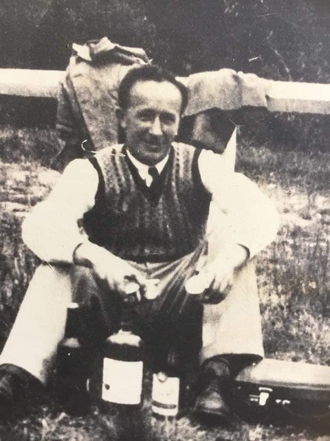 This photo was taken at a picnic at the footy club, around the time dad had been erecting fence around the ground. It would have been in the late 40s or so, and ever the gentleman, my dad is wearing a tie, and it looks like sipping some sherry or wine from little glasses, carried there in his leather case.